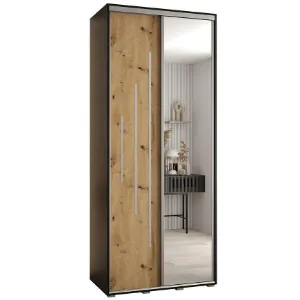 Szafa dwudrzwiowa z lustrem Ladder 150 dąb craft/lamele czarne