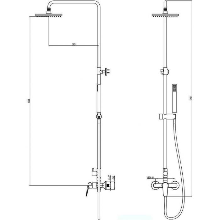 Xena system natryskowy z deszczownicą z baterią mechaniczną. Powierzchnia chromowana, wykonana z tworzywa sztucznego, metalu i stali. Kolumna posiada rączkę natryskową, z której wydobywać się może 1 rodzaj strumienia. Kolumnę należy zamontować naściennie.