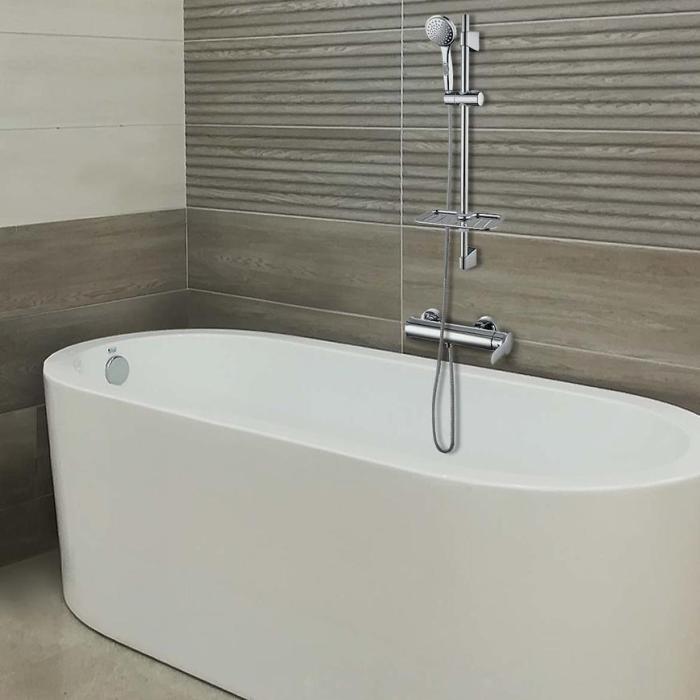 Zestaw natryskowy Krypton. Powierzchnia chromowana, wykonana m.in. z tworzywa sztucznego i gumy. Kolumna posiada rączkę natryskową, z której wydobywać się mogą 2 rodzaje strumieni. Kolumnę należy zamontować naściennie.